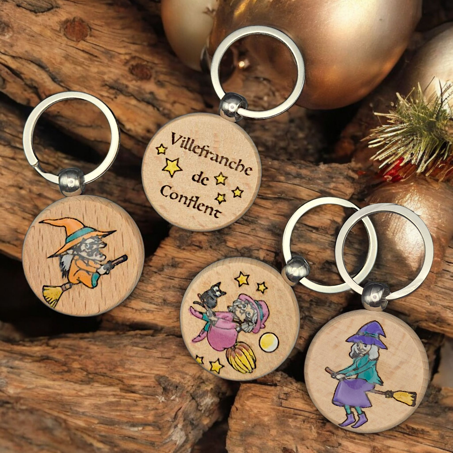 Porte-clés peint à la main et résine de protection.Choisissez votre sorcière préférée !